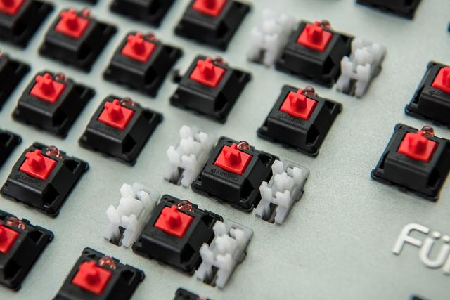 富勒G87的大按键采用了比力支流的卫星轴方案,不外每行键帽仍然具有人体工学高度!
